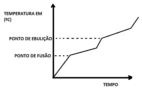 -> Quando aquecemos uma substância pura a temperatura fica constante durante a fusão e durante a ebulição.